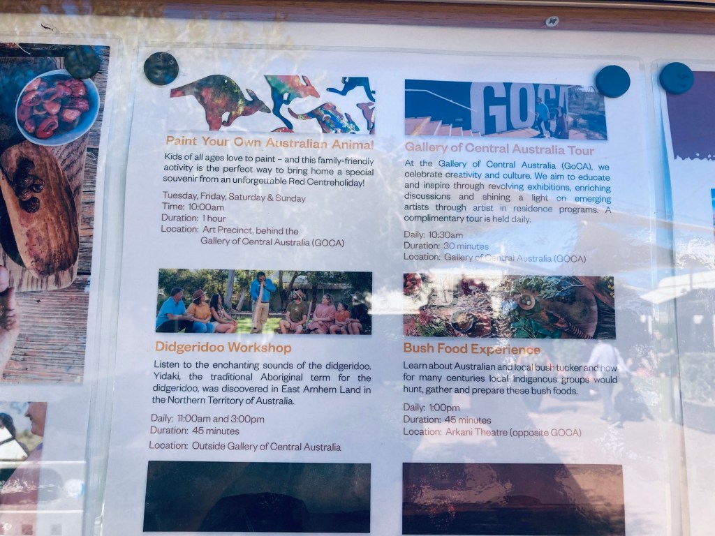 Free activities around the resort: I will admit, an Uluru holiday isn’t exactly a super cheap holiday, being in a remote area and things are expensive to run which is fair enough. There are, however, some great free activities that the resort host throughout the week. Over at the gallery, they host painting your own Australian animal which was really sweet and lots of fun. There’s a didgeridoo workshop, bush food experience, movies, guided walks, men’s and women’s Aboriginal talks, and lots more.